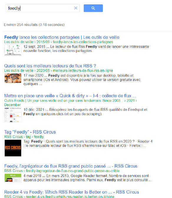 Figure 5. Recherche sur notre moteur personnalisé Veille sur Google CSE