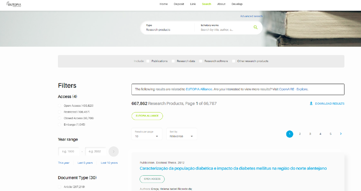 À l’avenir, il est prévu d’ajouter dans les portails OpenAire et Eutopia des fonctionnalités telles que les recommandations, les outils de partage, une recherche de logiciels (calculateurs, simulateurs…) ou d’autres ressources comme un inventaire de datasets. À suivre !