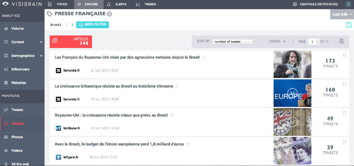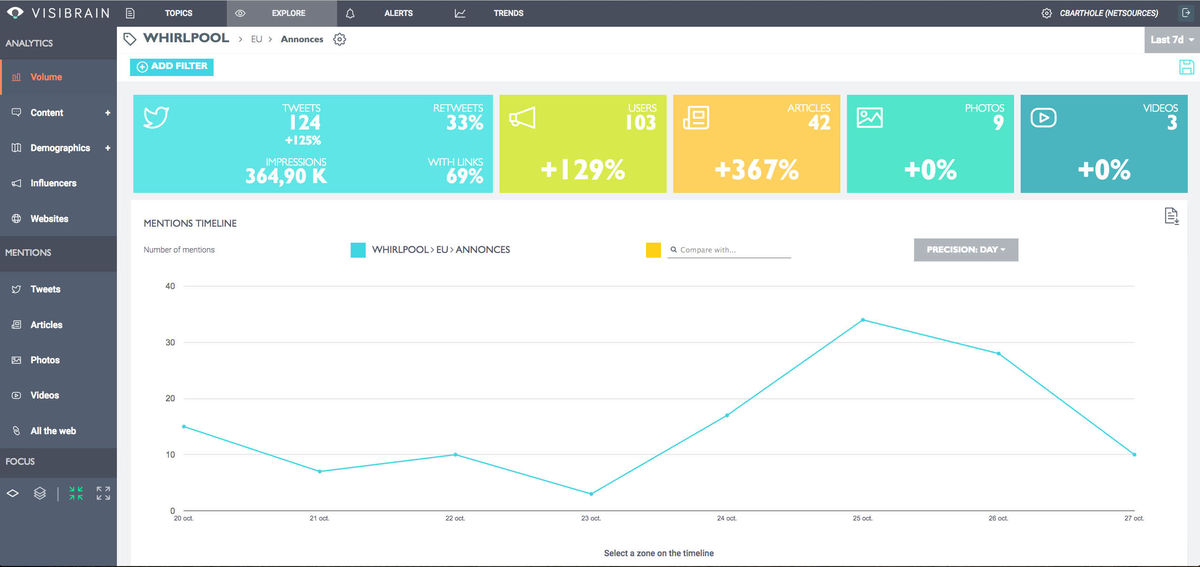 Pour le moment, la plupart des indicateurs concernent Twitter uniquement mais d’autres indicateurs seront mis en place pour les articles de presse d’ici la fin de l’année. Visibrain travaille également sur des analytics spécifiques aux photos et vidéos qui devraient être implémentés courant 2017.